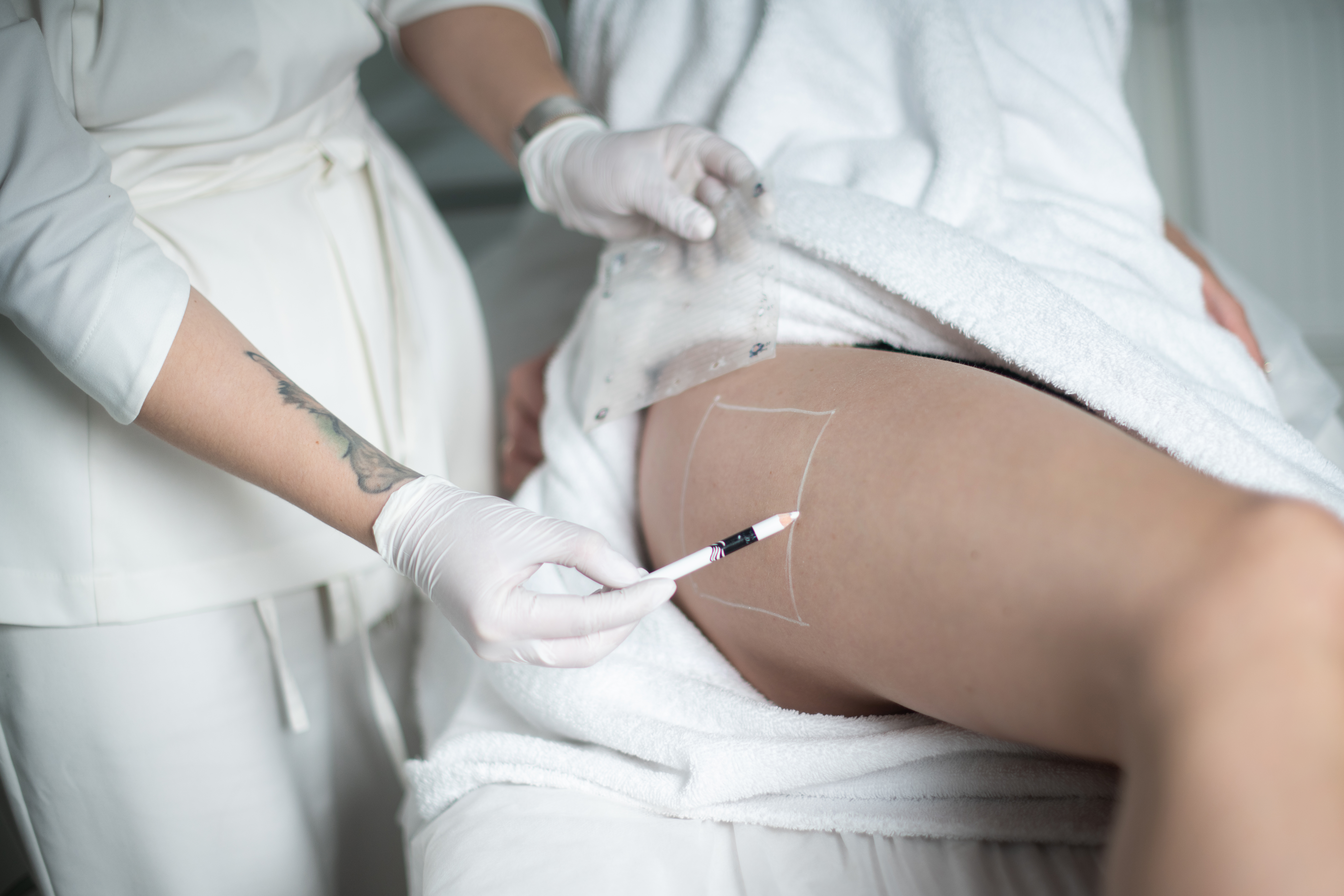 локальные подкожные жировые ловушки — вне зависимости от части тела (живот, зона галифе, бока, вокруг колен, ягодицы и т. д.);